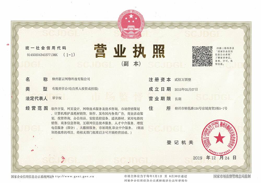 桂林扫呗网络科技有限公司成立于2022年04月27日,公司坐落在广西,详细地址为:灵川县定江镇宝路路西“大茅坪”(地号:GB20270 五楼02室);经国家企业信用信息公示系统查询得知,桂林扫呗网络科技有限公司的信用代码/税号为91450323MAA7M36H7H,法人是王正涛,注册资本为50.000000万人民币,企业的经营范围为:一般项目:技术服务、技术开发、技术咨询、技术交流、技术转让、技术推广;科普宣传服务;网络技术服务;信息技术咨询服务;信息咨询服务(不含许可类信息咨询服务);企业管理;家政服务;酒店管理;家居用品销售;日用百货销售;日用品销售;计算机软硬件及辅助设备零售;互联网销售(除销售需要许可的商品);个人互联网直播服务;网络设备销售;办公设备销售(除依法须经批准的项目外,凭营业执照依法自主开展经营活动)